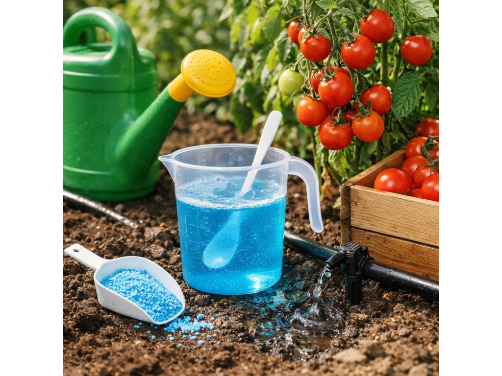 - 1 odmerka (10 g) hnojiva na 10 l vody