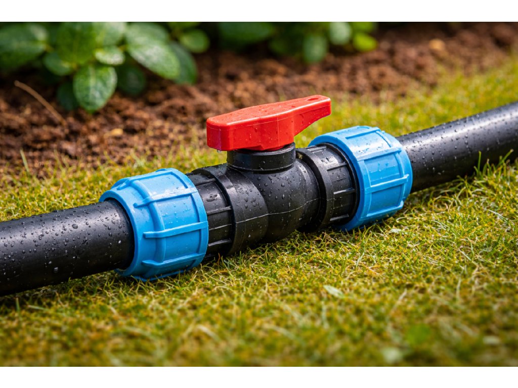 Guľový ventil s mechanickou spojkou 32 x 32 sa používa v rozvodoch závlahovej vody. Ventil sa ovláda pákou. Jeho vnútro je mosadzné